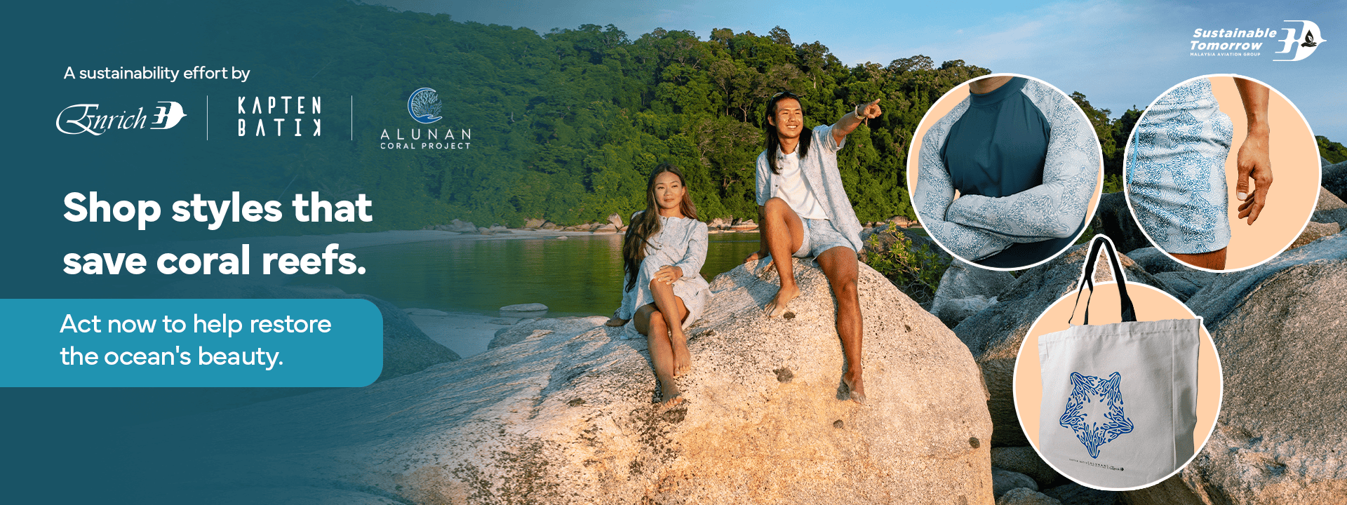 Have you heard this fact about the ocean? Coral reefs cover only 1% of the ocean floor, yet they support over a billion lives worldwide? From tourism to protecting coastlines, coral reefs are essential. But they’re disappearing fast due to climate change and pollution. This is why we’ve partnered with Kapten Batik and Enrich by Malaysia Airlines to protect reef ecosystems.